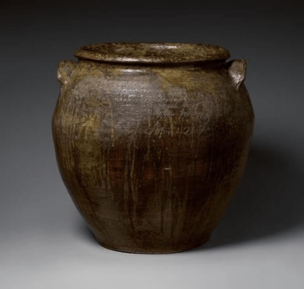 In the early 1800s, David Drake was born an enslaved man and began work in Edgefield, a district of South Carolina and the center of the states stoneware production. The majority of the enslaved population worked as potters, producing ceramic stoneware. The majority of these enslaved potters will never be known or recognized by name, because this work was impersonal. Though they were artists, they were not permitted to sign their work—in fact, they were not even permitted to be literate, to know how to write their own names. However, Dave the potter defied these rule, signing many of his pots and even writing poetry on some of them.